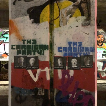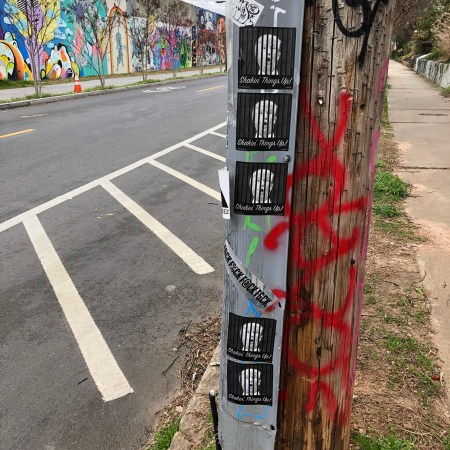 The kids call them slaps. Stickers. Well, when used as street art they’re are called slaps or sticker slaps. At least that’s what I’ve been told.