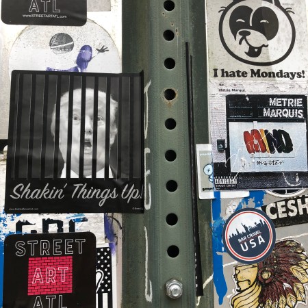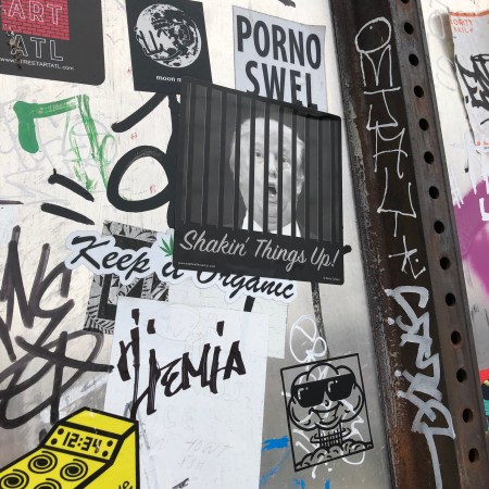 I went to the Krog Street Tunnel to add some slaps. Just a little of my flavor added to the constant storm of visual stimulation in this location. While there, I found a group of kids having fun and gave them some stickers to spread around other locations in Atlanta. Spontaneous assistance. It’s nice to have help when taking care of business like this.