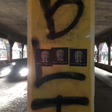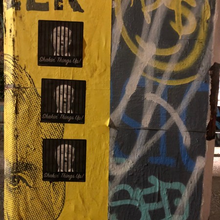 Shaking’ Things Up is the first sticker slap in a new (as of yet untitled) series of work. I finally have something I wanted to add to the Tunnel.