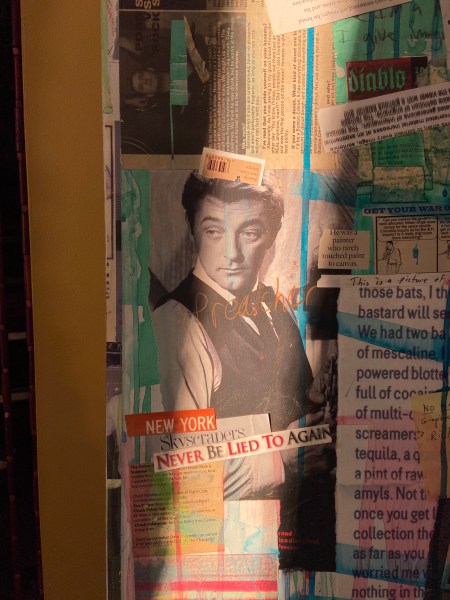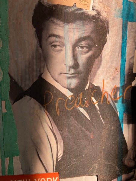 I was working on class preparations in my studio this morning when I noticed the sunlight highlighting a section of a collage I made many years ago. Robert Mitchum from The Night of the Hunter. There it is. Another valuable nugget from the mine. Something I can use, right now.