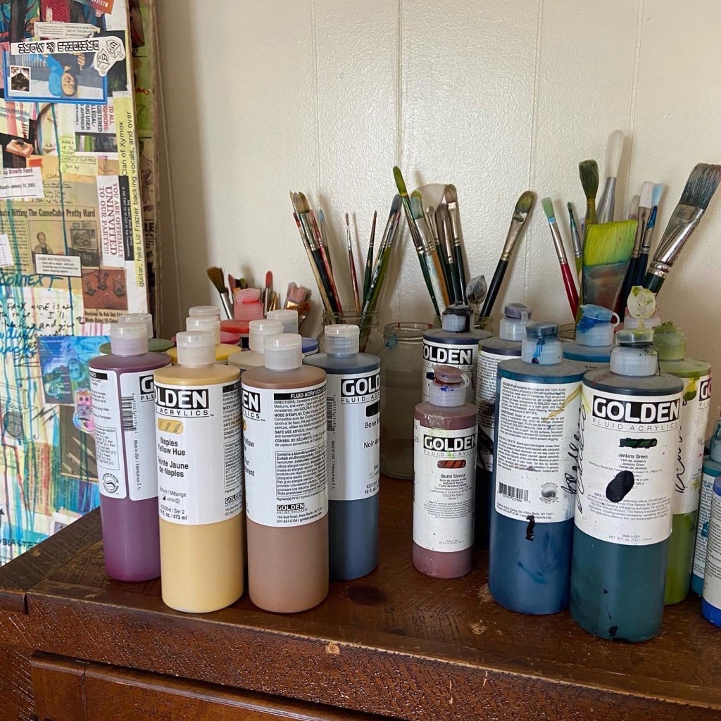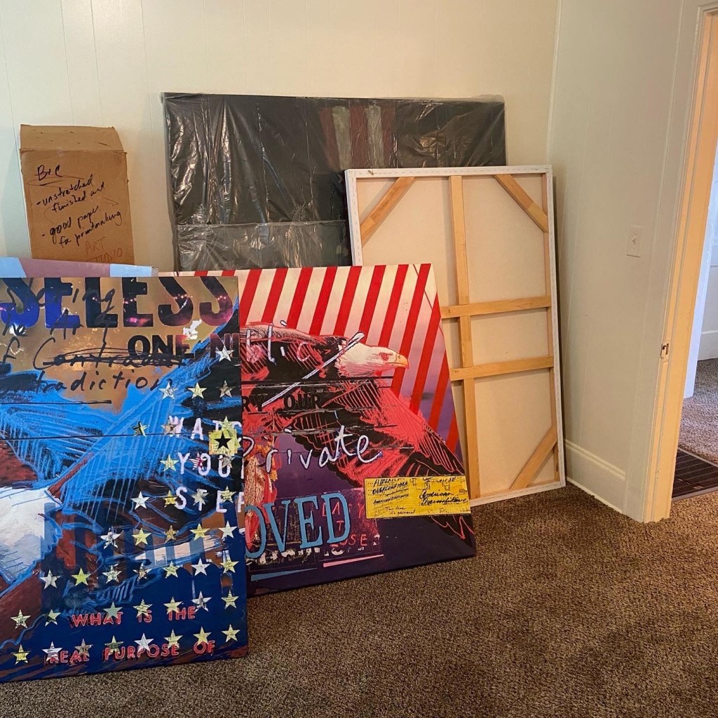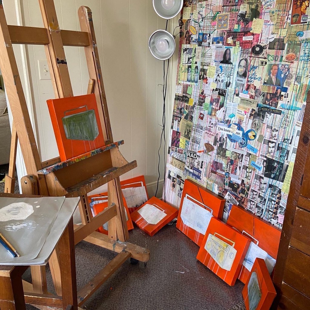 Back home in Chattanooga now, and back in the studio with Remy, my puppy. I’m picking up where I left off on some new paintings while catching up on the January 6th hearings.
