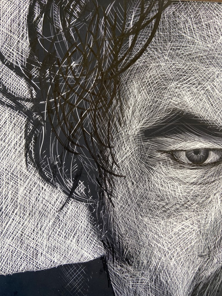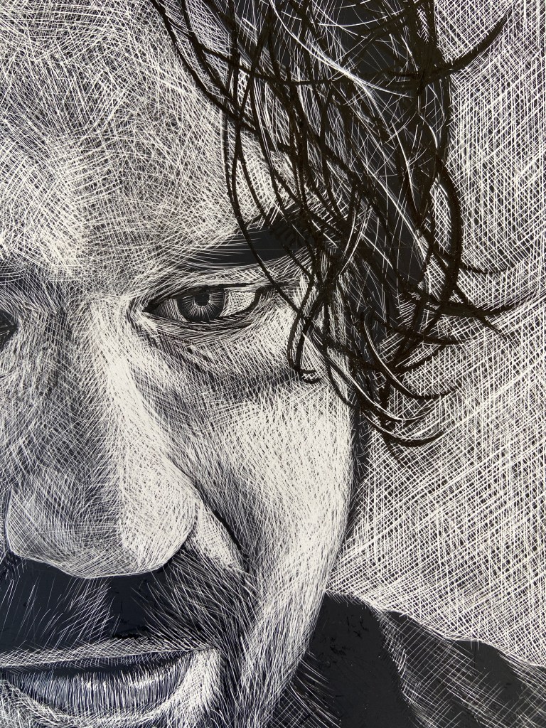 In one of my classes, I ask my students to create a scratchboard self-portrait. I decided it was time I made my own. It’s a great exercise to practice my skills. It’s been about 20 years since I’ve “self-portraited”. Thankfully, I’m pleased with the result.
