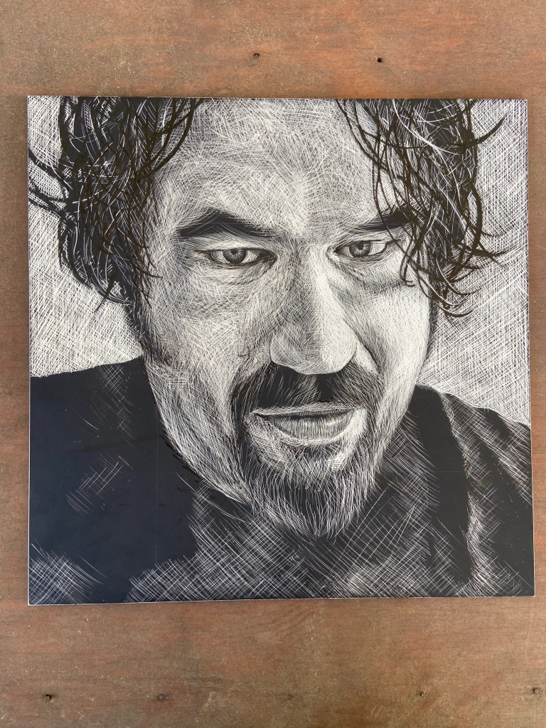 I enjoy working in scratchboard. Thinking of what else I can create in this medium besides portraiture.