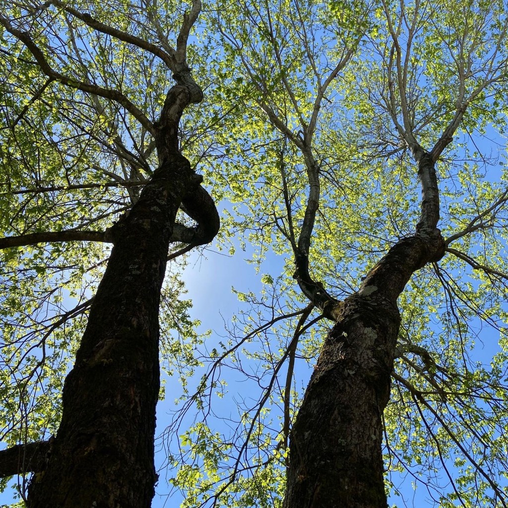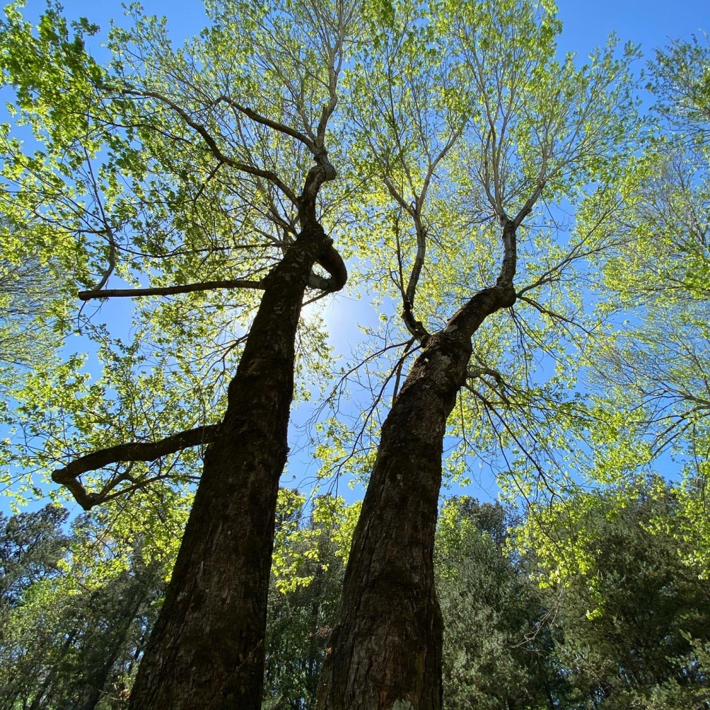 The other day I was taking a scheduled break from my Drawing II class. I stepped outside and walked a few steps and looked up into the trees. I noticed these two. It looked like they were having a conversation.